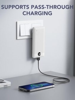 • Sale! VRURC Portable Charger,Power Bank Built-in Cables and AC Wall Plug, USB C Portable Bank 10000mAh, Travel Essentials Phone Charger Compact External Battery Pack for Smart Phones, Tablets etc-White